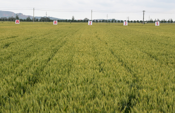 参加小麦新品种观摩推介会的来宾在我校小麦试验地参观小麦新品种