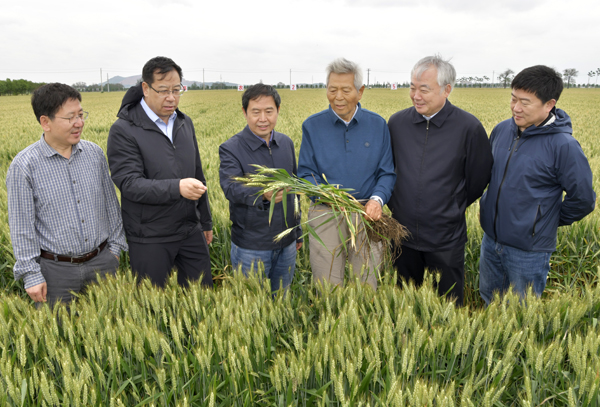 灾年看品种、丰年看产量、内行看门道。5月9日至18日,以学校小麦育种专家为主体的专家团队22人历时10天,深入河南、江苏、陕西等省区30个县区23个小麦示范园、10个小麦品种联合体试验点,对学校9个主推品种、59个近年审定品种、208个高代品系进行了细致的观摩考察。专家团队一行考察了学校小麦新品种(系)田间性状表现,深入了解了小麦品种改良目标和产业需求信息,对大面积示范田进行了观摩,并就品种田间表现、区试审定与品种推广、未来小麦育种方向等与种业企业及农技、种业等管理部门负责人进行了面对面交流。