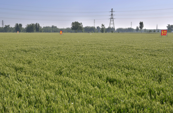 参加小麦新品种观摩推介会的来宾在河南省长葛市我校小麦试验示范站参观小麦新品种
