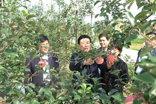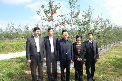 9月20日,陕西省政协主席马中平在渭南市政协主席王建华、白水县委书记叶珺、县长刘振强、县政协主席杨永丰等领导的陪同下,到我校白水苹果试验站考察指导工作。