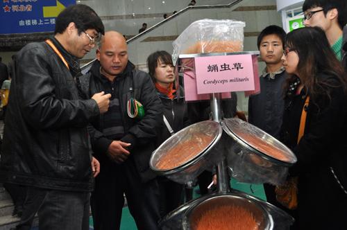 农高会上,蛹虫草展台成了我校展区的热点之一,不少参观者排队等候详细咨询,杜双田和他的研究生成了最忙的人。