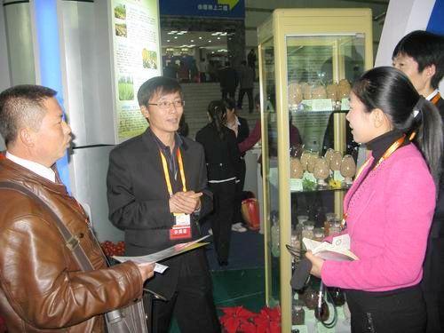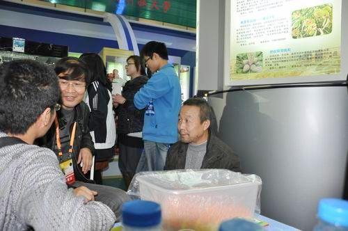 杨老汉来自陕南的商州,家里以前是养蘑菇的,因为养殖技术和市场销路问题,这几年养菇棚一直空着,他就寻思着找点市场销路不错的菌类来“重新开张”。一次偶然的机会他在电视上看到蛹虫草这种菌类的市场前景不错,但是因为不是个小数目的投资,他一直没有下定决心。“当时我在电视上看到的介绍,也打电话咨询过一些湖南和江西的企业;听说这次农高会咱们这有,我就特地赶过来了”。因为我校蛹虫草这种“黄金草”在展区现场特别受宠,现场专家杜双田副教授非常忙碌,杨老汉就一直等在旁边。“看着许多客商询问,听着教授的介绍这种产品,觉得这个东西确实是不错,我想待会再跟教授请教一下技术,先回去试种一下,我相信咱们西农大的专家。”