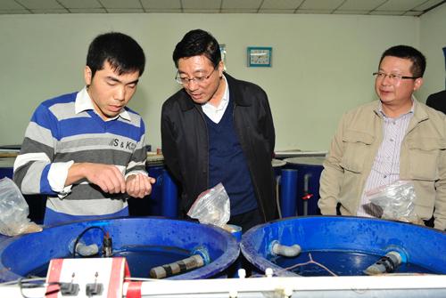 在安康水产试验站,调研组一行在安康市政府副市长邹顺生及动科学院负责人的陪同下,查看了驻站专家与学生宿舍、食堂、办公室、多媒体培训教室、实验室以及养殖池塘、室内循环水养殖系统、苗种繁育设施、室外生态循环养殖系统、饲料加工中试车间等科研、教学与生产示范设施,并听取了试验站首席专家吉红博士的汇报。孙其信校长对水产试验站建站四年来,在技术示范、科学研究和人才培养方面所做的工作给予了充分肯定。他指出,试验示范站既是学校服务区域产业的重要切入点,也是学校科学研究和人才培养的重要平台。他要求试验站站在整个汉江流域、全省、乃至全国水产业发展的战略高度,对功能定位进行重新梳理,进一步凝练关键技术研究领域和产业服务方向,切实加强团队建设,大力开展技术创新,并积极拓展教学服务范围,进一步发挥人才培养职能。赵忠常务副校长对水产试验站如何做好学生实习实践工作提出了指导意见。