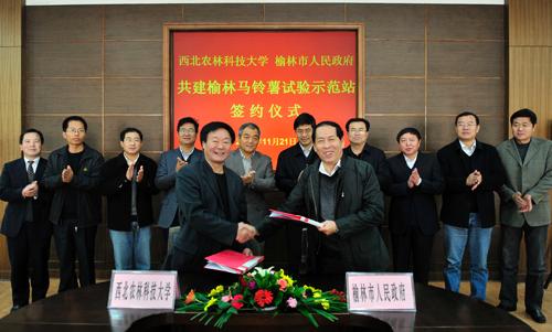 11月21日上午,我校与榆林市政府合作共建“西北农林科技大学榆林马铃薯试验示范站”签约仪式在我校国际交流中心举行。