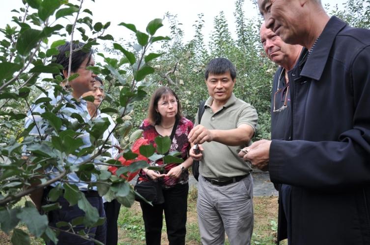 王平博士一行在我校园艺学院、植保学院、葡萄酒学院的果树试验田进行了实地考察,参观了相关实验室和推广展室,与植保学院、园艺学院、食品科学与工程学院、科技推广处、国际交流与合作处的专家和领导围绕苹果产业的种苗培育、病虫害预测防控、栽培模式、果品贮藏加工、果农和技术人员培训、标准化生产等问题进行了热烈的讨论和交流,在苹果相关产业的基础研究和应用推广方面达成实质交流合作共识和初步合作意向。并为我校师生介绍了唐氏•康奈尔—中国学者项目,做了“Overview of Food Science Programs at Cornell University and Apple Pest and Disease Management Programs at Cornell”、“An overview of the Apple Insect Pest Complex in NY and Management Techniques”等系列报告。