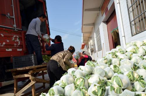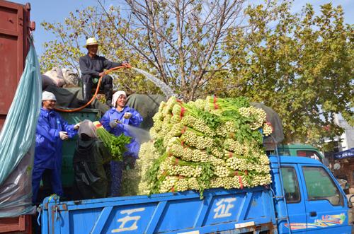 首席专家张树学在解答菜农番茄生产中遇到的问题 阎良区武屯镇菜农正在装运芹菜 武屯镇菜花外运
