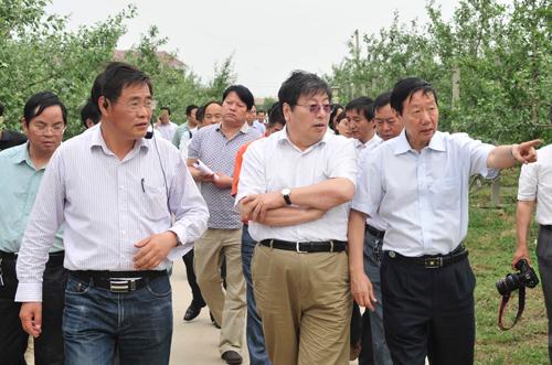 在考察调研中,王衍亮巡视员、向青云副司长一行在我校原校长、校农业科技推广课题组负责人孙武学、副校长吴普特、白水县县长刘振强以及我校组织部、科研处、推广处等部门负责人陪同下,现场参观了我校白水苹果试验示范站的苹果优质高效栽培技术示范展示区、苹果新品种选育区、防虫网新技术研究区和新建的现代化苹果矮砧集约栽培示范展示区,听取了我校白水苹果试验示范站首席专家赵政阳教授的工作汇报,并与试验示范站专家、当地政府领导、农技人员及果农示范户代表进行座谈,深入了解我校农业试验示范站如何在以大学为依托的农业科技推广模式中发挥支撑功能及实际运行状况。