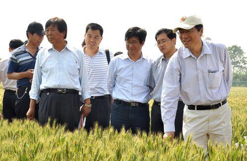 在小麦原种圃、小麦新品系鉴定试验田,孙其信向我校有关专家了解了小麦品种在耐旱、抗冻、抗病、抗倒伏、早熟性、千粒重、成穗率、产量等方面的表现情况。孙其信希望专家们通过考察、观摩,取长补短,潜心攻关,选育出优良的小麦品种,为推进农民增收、农业科技创新和粮食安全作出贡献。