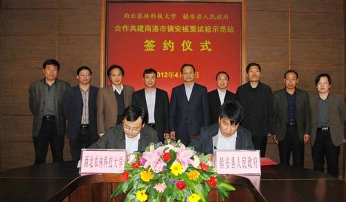 4月20日下午,我校与镇安县人民政府合作共建商洛镇安板栗试验示范站协议签字仪式在在国际交流中心210会议室举行。校党委副书记马建华、镇安县县长璩泽涛分别代表校县两方签署合作协议。