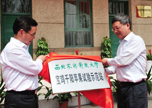 副省长祝列克和宝鸡市上官吉庆市长共同为苹果试验示范站揭牌