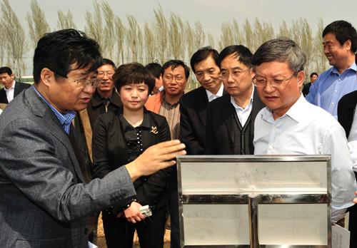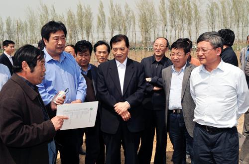 揭牌仪式开始前,祝列克副省长在杨景昆副书记以及宝鸡市、千阳县等领导陪同下参观了我校试验示范站新建的苹果试验示范园,并听取了苹果专家韩明玉教授、李丙智教授关于试验站的定位和新栽培模式情况的介绍。
