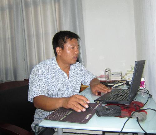 (乾落村第一书记韩锁昌工作照)