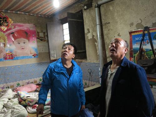 (查看贫困户房屋漏雨情况)
