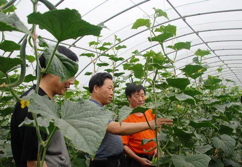 李华副校长检查蔬菜站新品黄瓜生长情况