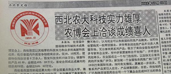 首届博览会上,原西北农业大学精选了具有国内外领先水平的新技术、新成果200项参展,这些高新科技成果吸引着国内外宾客争相前来洽谈,园艺系蔬菜良种“遭抢”,《中国蝶类志》引起轰动。周尧、李华、张涌、孙益知等数百名专家教授从书斋中、讲台前、实验室里走出来,走进农博会,积极把自己的科研成果向省内外群众推介。葡萄与葡萄酒系列产品开发、花粉系列产品开发、无公害系列产品开发、黄牛奶肉性能综合提高配套技术、塑料日光温室技术、大蒜生产及配套开发技术等项目,已形成或被有关部门确定为新兴支柱产业。