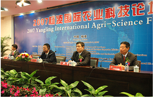 2007年11月5日,第十四届农高会在杨凌国际会展中心举行,同时在我校开幕的还有杨凌国际农业科技论坛,该论坛以“国际农业合作、创新与发展”为主题,共举办3天。期间,我校与澳大利亚悉尼大学签订了校际合作协议。与会中外专家通过了《杨凌国际农业科技论坛宣言》,倡议各国农业科研教学机构的科学家通过杨凌国际农业科技论坛这一平台,探讨开展国际农业科技合作的新途径,在资源共享、合作研究、技术服务、人才培养与交流等方面取得一批实质性合作成果。
