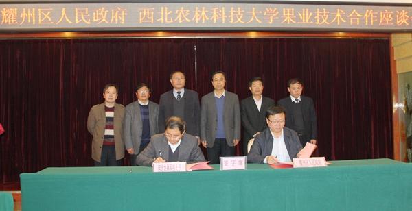 协议签字仪式由耀州区副区长焦毅主持,副校长廖允成与耀州区区长张大军在协议上签字,耀州区人大、政协及相关单位、镇办负责人参加了会议。协议签署后,廖允成副校长及推广处负责人一行检查了试验站工作。